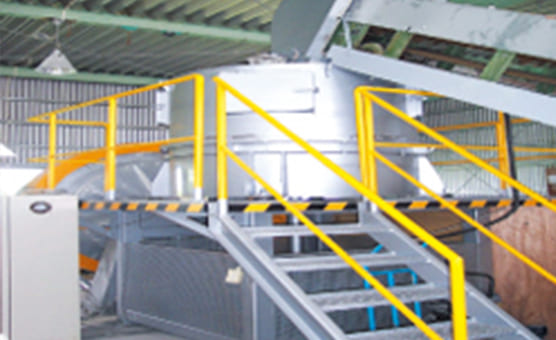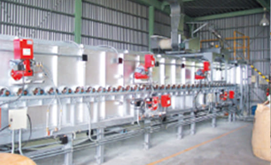 焼き上がった製品は外気で自然冷却し2mmから75mmの粒度に分解されます。