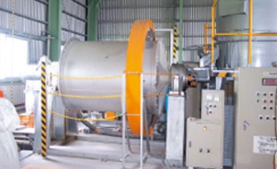 粗破砕されたガラスびんはバーナーで乾燥させた後、特殊な破砕機でカレット状に砕きます。
