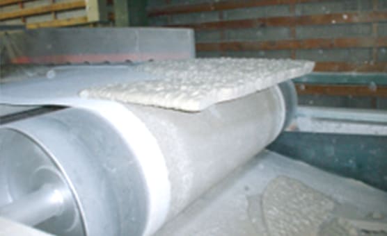 粉状になったガラスに微量の添加剤を加え約900度の温度で焼き上げます。
